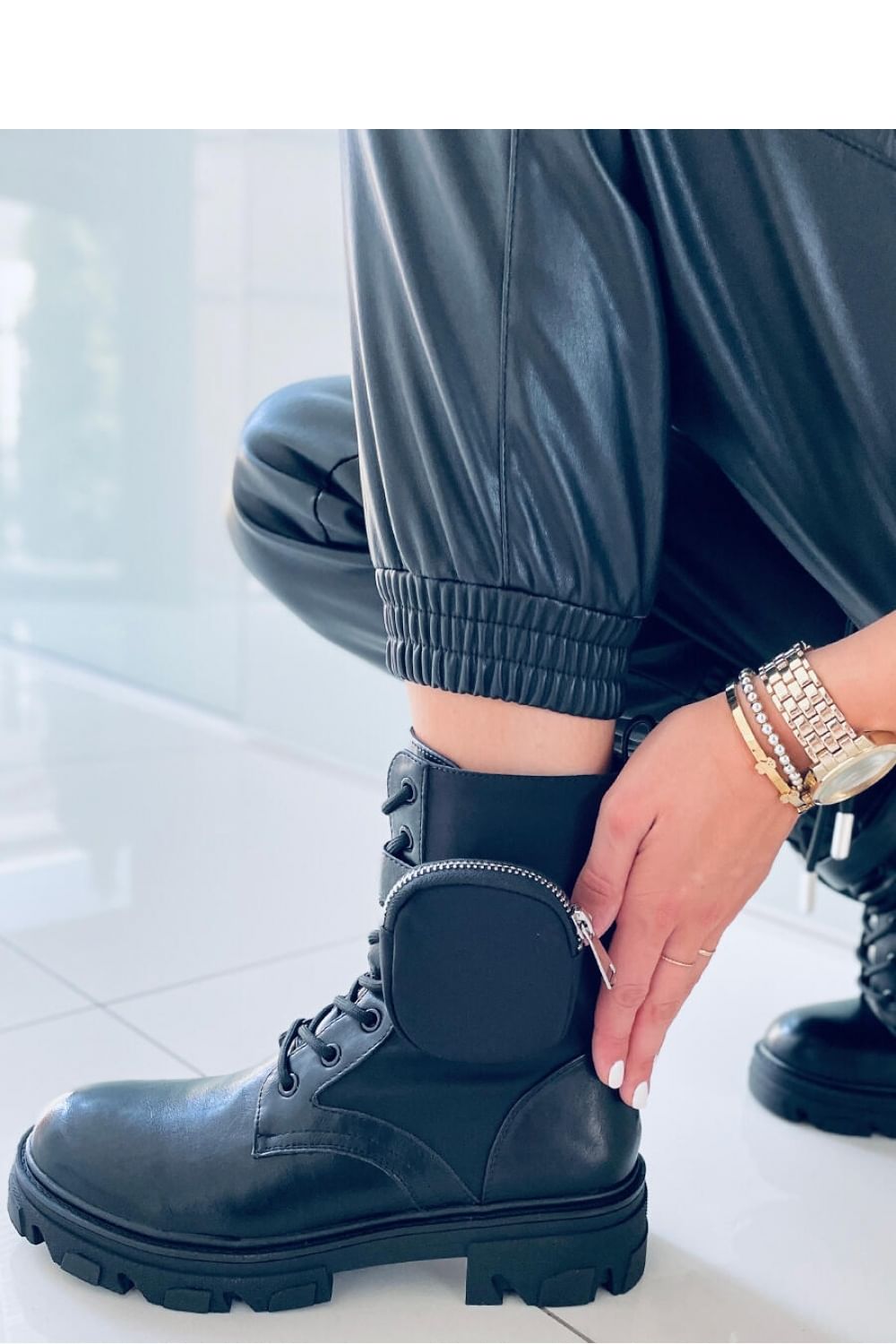 Women’s lace-up boots ? baggers. They have the most fashionable cut on a thick sole and with a detachable pouch They are an absolute hit! I guess you already know which shoes will reign in your closet from now on ? : ) They are made in an original combination of eco leather and neoprene fabric. Warming – delicate fur.