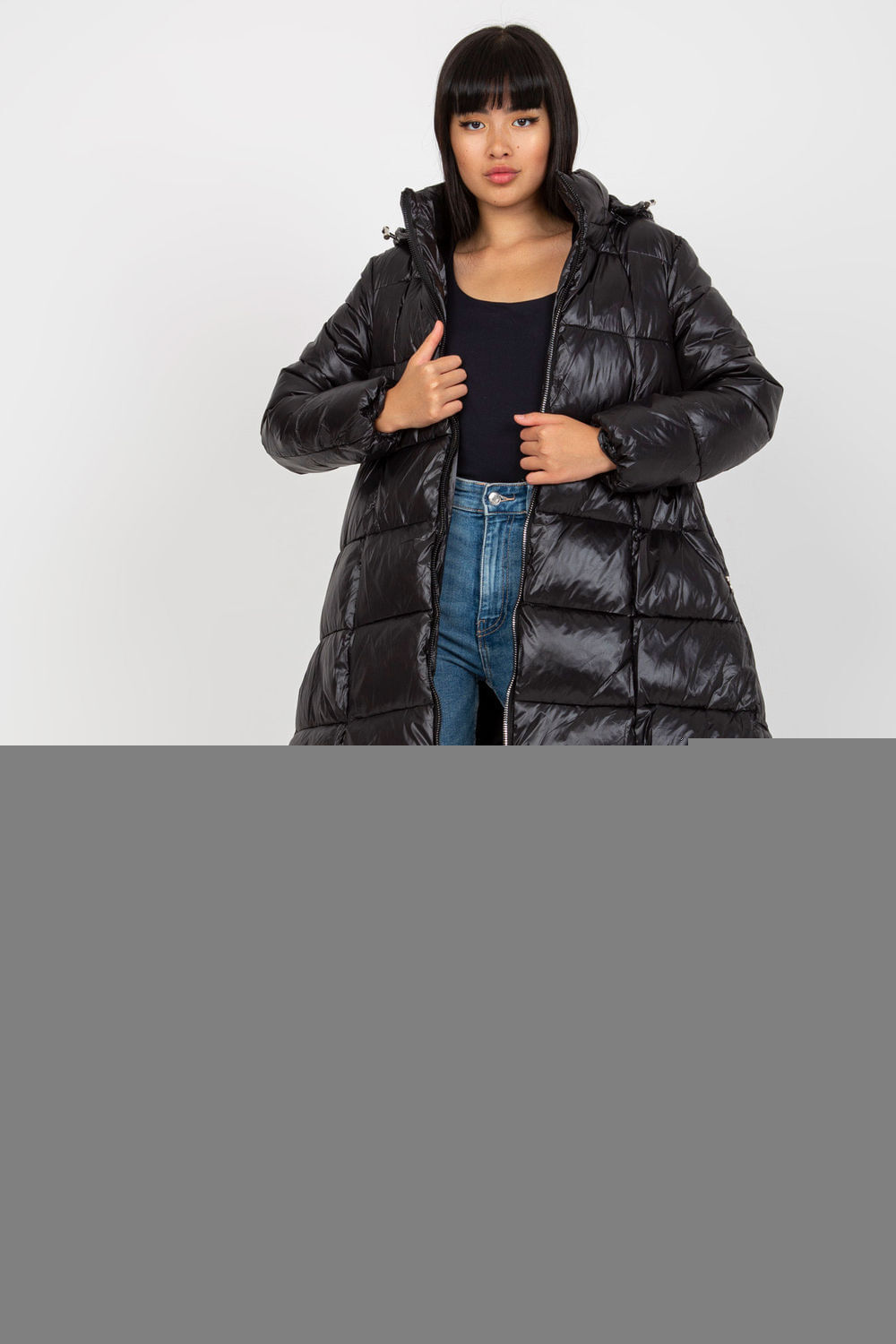 Women’s quilted coat with long sleeves, zippered. The coat is fully lined, with a detachable hood, zippered pockets on the sides.