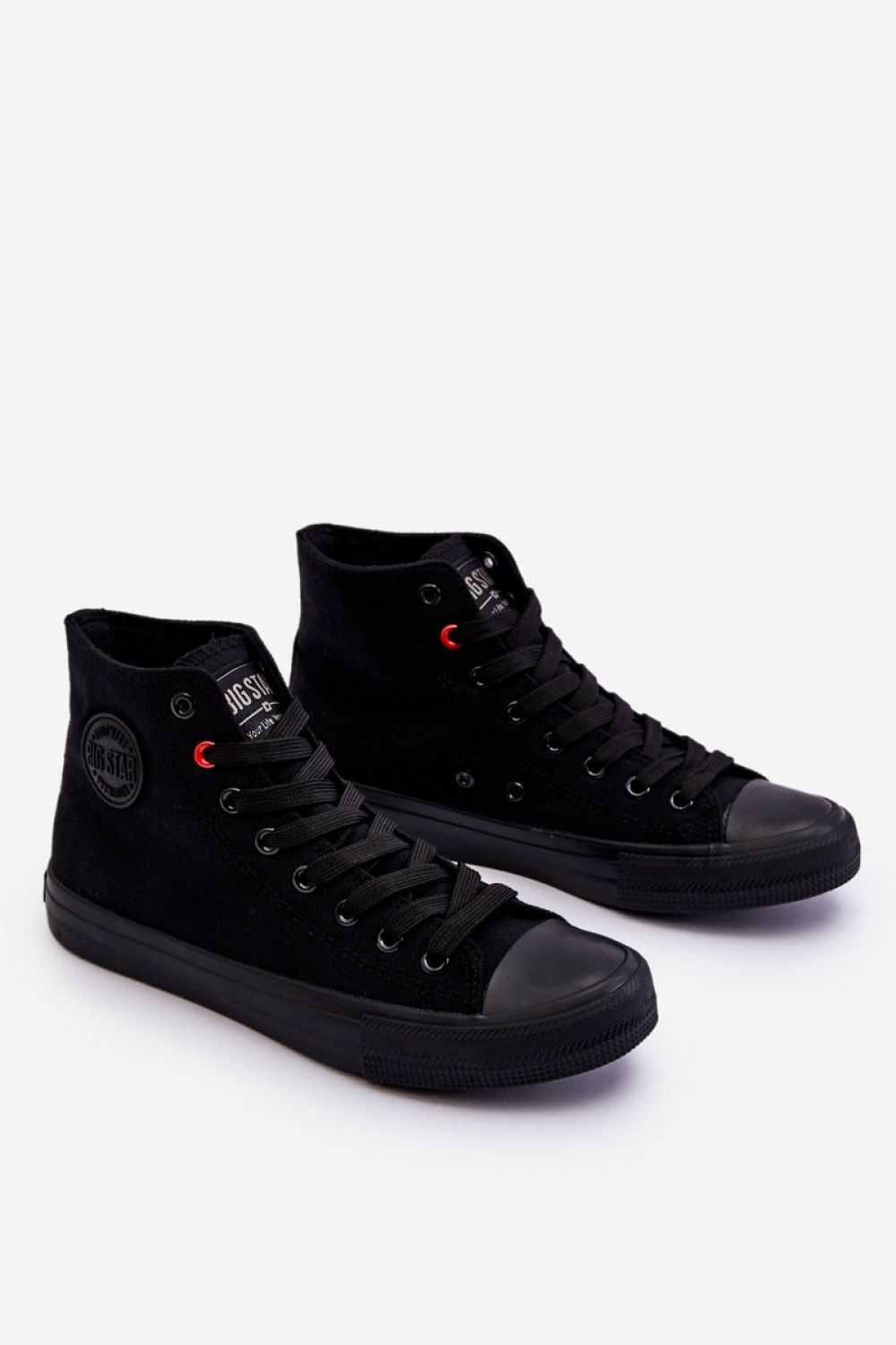 Women’s high-top sneakers from Polish brand BIG STAR. They feature a decorative rubber brand logo on the side of the upper. The shoes have a soft, fabric insole. Set on a delicate platform with a non-slip sole. Classically laced model.