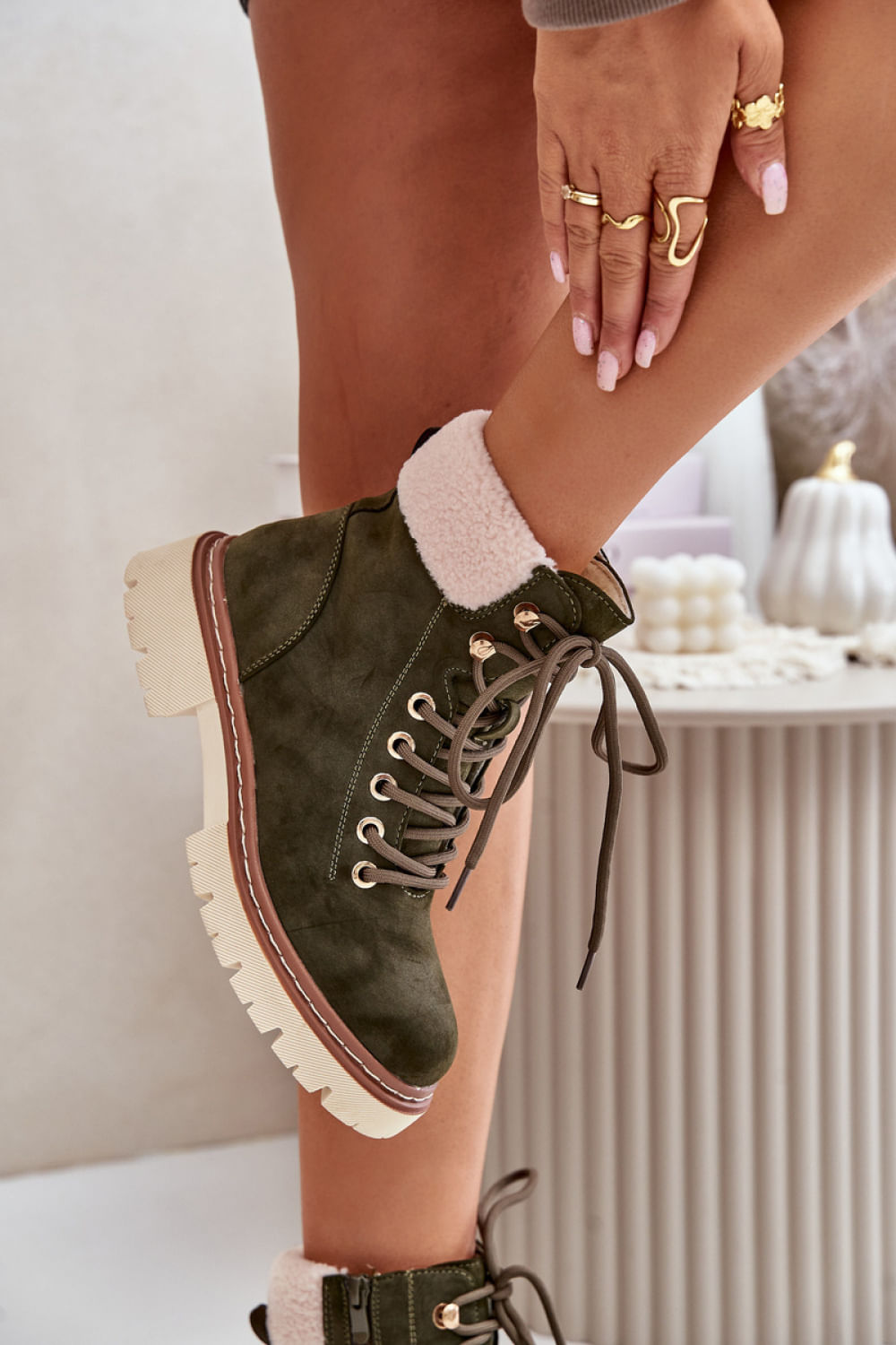 Women’s suede-like boots are a stylish and practical proposition for winter days. Lacing and zipper closure will ensure a perfect fit and comfort. The insulation in the form of a shoe blanket guarantees warmth, and the fur on the top of the upper adds charm. Rounded toes give them a classic look, and the combination of fashion with functionality.