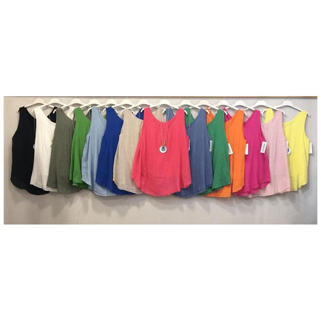 This stylish Italian vest top is tailored to perfection. Crafted of breathable fabric with ruched detail, it provides comfort for all day wear. The sleeveless design adds a stylish touch for any look.