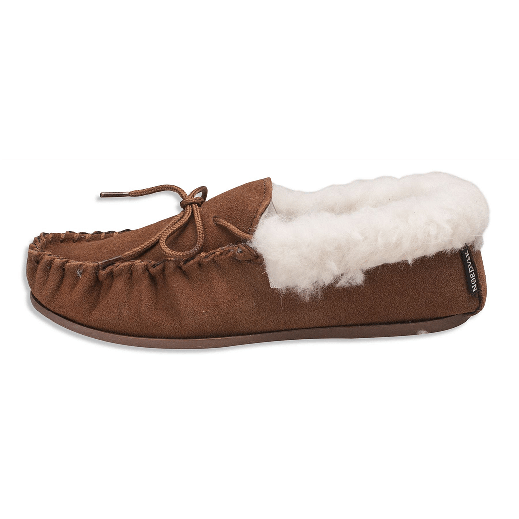 Nordvek Womens Sheepskin Suede Moccasin Slippers With Rubber Sole – 417-100