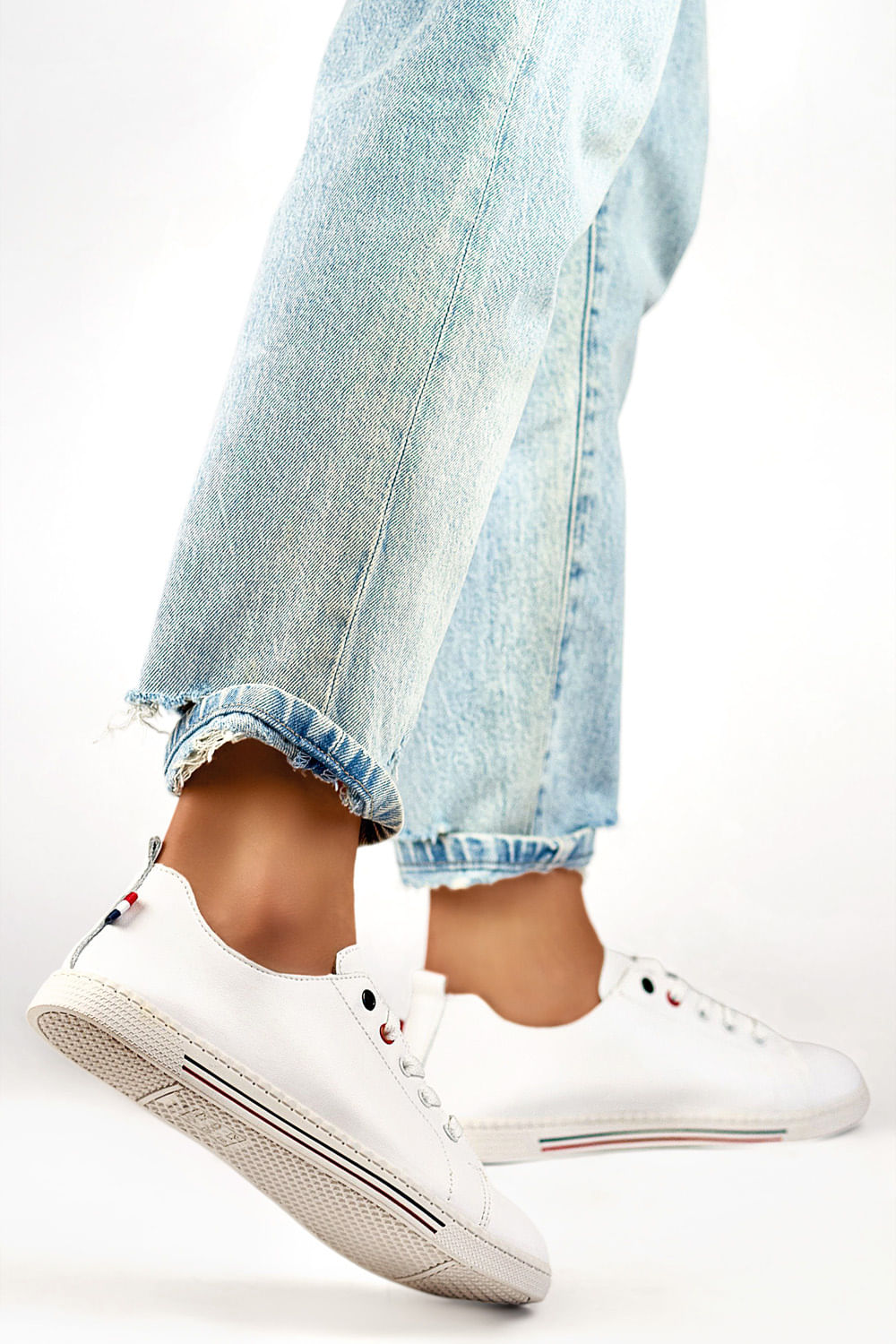 White women’s sneakers made of high-quality natural leather are a stylish and versatile option for year-round wear. The model features classic lacing for a perfect fit to the foot, while the natural leather insole provides comfort and breathability. The sneakers have a 2 cm high platform, which adds subtle height and stability, while remaining lightweight and comfortable. The round toe enhances the classic look of the footwear, which goes well with a variety of styles, both casual and more elegant.